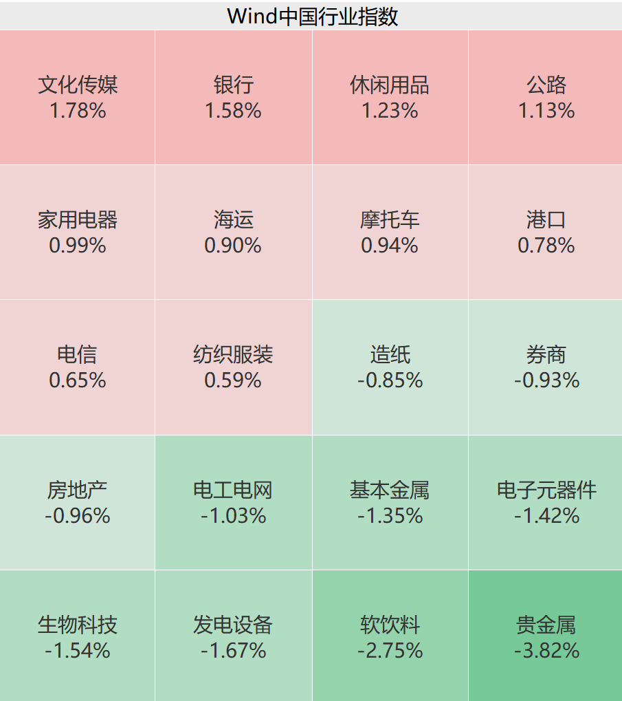盘面上,上昼传媒板块领涨商场,小红书想法股抓续火热;银行、公路、家电、海运等板块发达居前;贵金属、软饮、发电诞生等颠簸下挫,券商、房地产等消极。