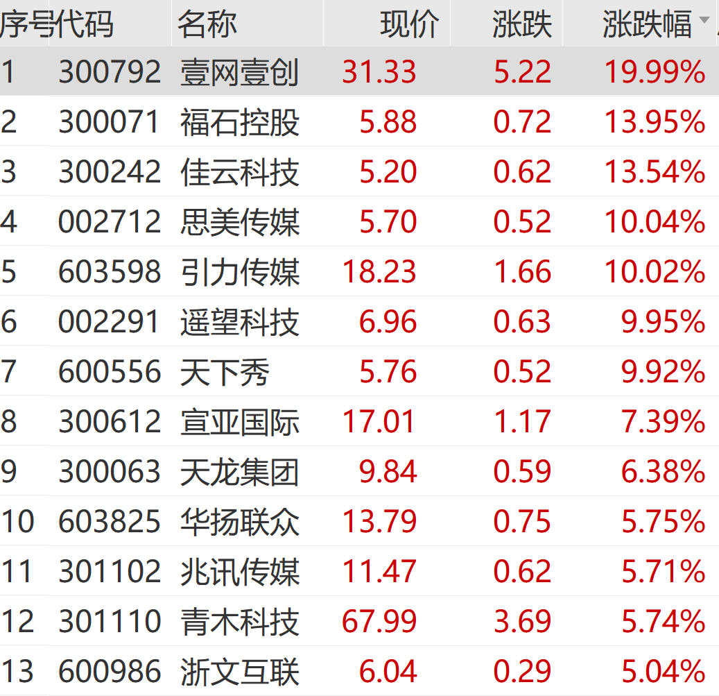 传媒板块高开高走