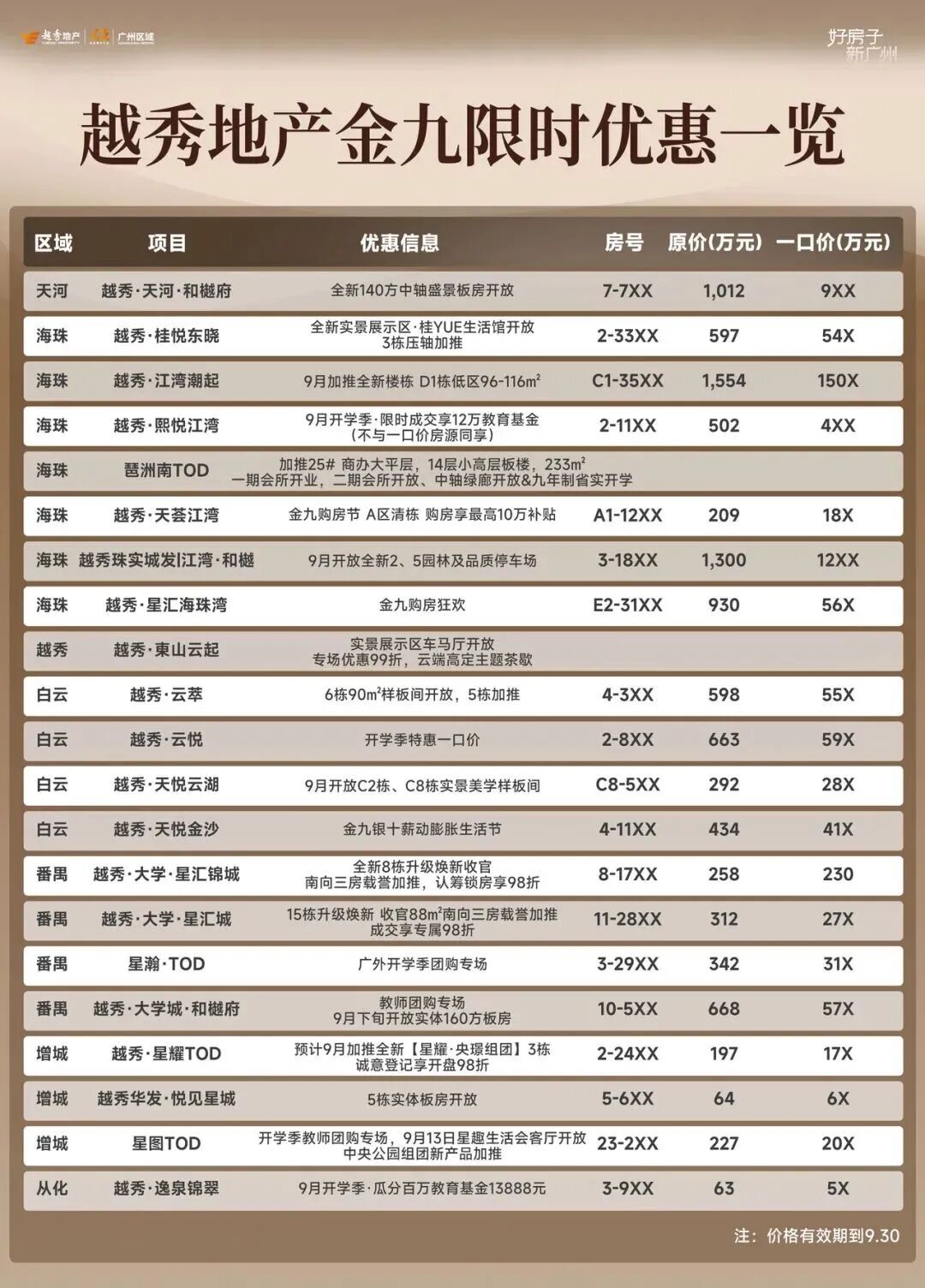 为感德回馈新老客户,越秀地产广州区域负责推出了“金九特惠行径”,旗下二十多个方法优惠皆发,实实在在让利购房者。