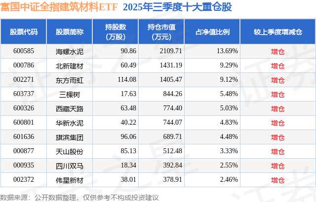 本站音信,日前富国中证全指建筑材料ETF基金公布三季报,2025年三季度最新范围1.54亿元,季度净值涨幅为12.92%。